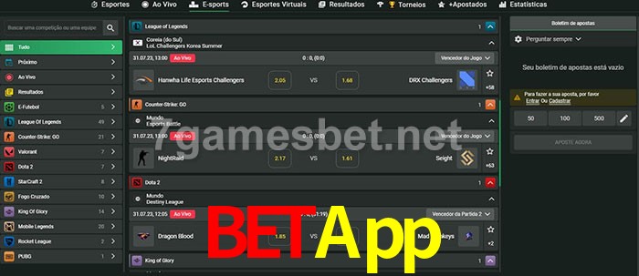 A aposta BetApp oferece aos jogadores a experiência mais conveniente de apostas em eSports!